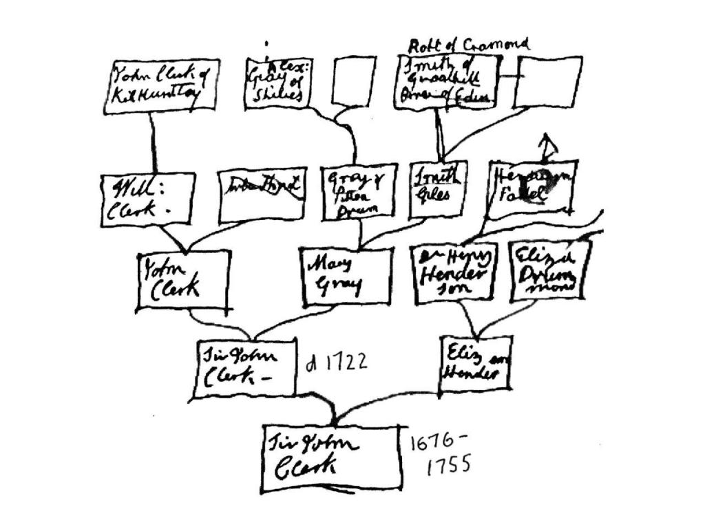 Family Tree 1 : The Early Clerks of Penicuik, down to the Baron, Sir John Clerk 2nd Bt (1676‒1755)