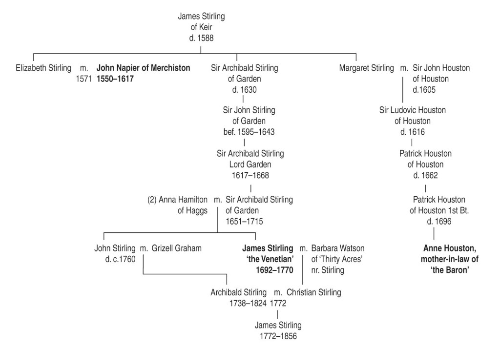 Family Tree 4b : The connection between the Clerks of Penicuik, John Napier and James Stirling